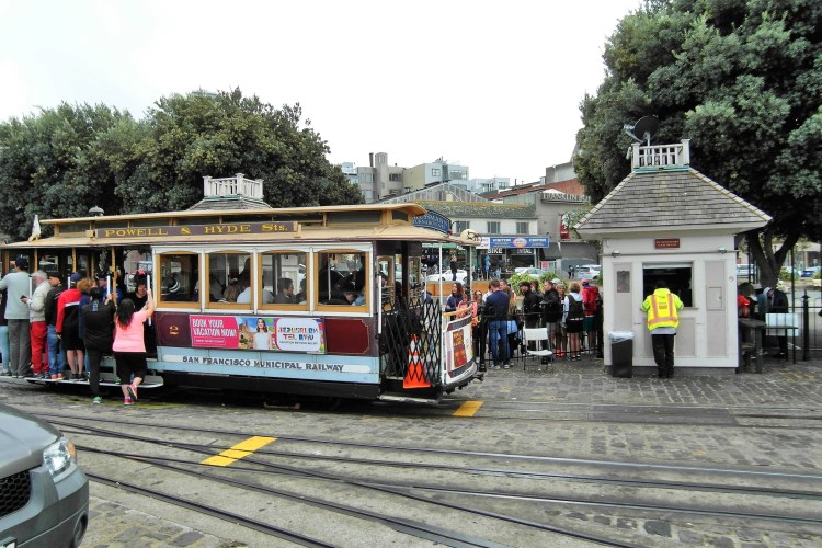 San Francisco – Wir beginnen den Tag mit Blick auf die City Hall vom Memorial Court aus. Dann schauen wir zum Corona Heights Park hoch, um den Blick über die Stadt zu genießen bevor wir weiter zum Alamo Square mit den Painted Ladies den bekannten viktorianischen Häuser San Franciscos kommen. Besuchen noch den Golden Gate Park, ehe wir beim weltweit bekannten Wahrzeichen der im Art Déco gebauten Golden Gate Bridge ankommen. Eine Fahrt über oder auch ein Gang auf die Brücke lohnt sich wegen der Sicht auf die Bucht und die ehemalige Gefängnisinsel Alcatraz auf jeden Fall. Über die Lombard Street (krummste Straße der Welt) und Ghiradelli Square geht’s weiter zur Fishermans Wharf dem ehemaligen Fischerhafen, heute das meistbesuchte Ausflugsziel. Die Ohrenrobben auf Pier 39 sind hier die Touristenattraktion. Unbedingt soll eine Harbor Cruise (Kurzvideo⇩) und eine Fahrt mit der Cable Car (Kurzvideo⇩) nicht ausgelassen werden. An der Kreuzung Market Street/Powell Street ist die Drehscheibe für die Linie Powell&Hyde und Powell&Mason. Tipp: Einen kurzen Spaziergang von Fishermans Wharf entfernt, in der Nähe von Pier 39 endet die von der Powell Street kommende Cable Car, mit weniger an Wartezeit für eine Fahrt. Wir lassen den letzten Abend am amerikanischen Kontinent bei einem Dinner mit Blick auf Bucht, Alcatraz, Golden Gate Bridge, nach mehr als 8000km Fahrt und einer Menge neu gewonnener Eindrücke ausklingen.